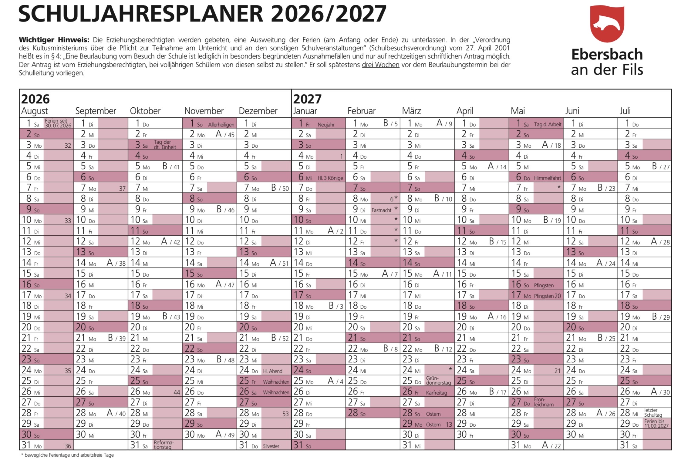 Die ausgewiesenen Schulzeiten sind rechtlich verbindlich für alle Schülerinnen und Schüler.